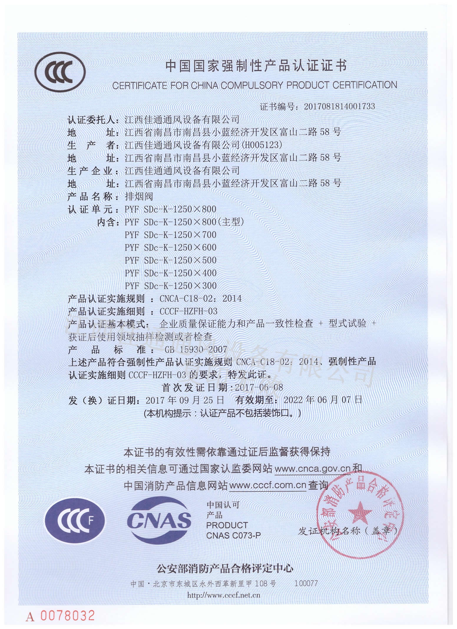 想了解更多請點擊===>>排煙閥3C認證證書 3C排煙閥 排煙閥