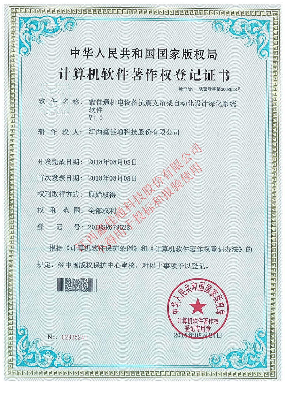 非特殊說明,本資質或榮譽不能轉載,最終解釋權歸江西鑫佳通科技股份有限公司所有。