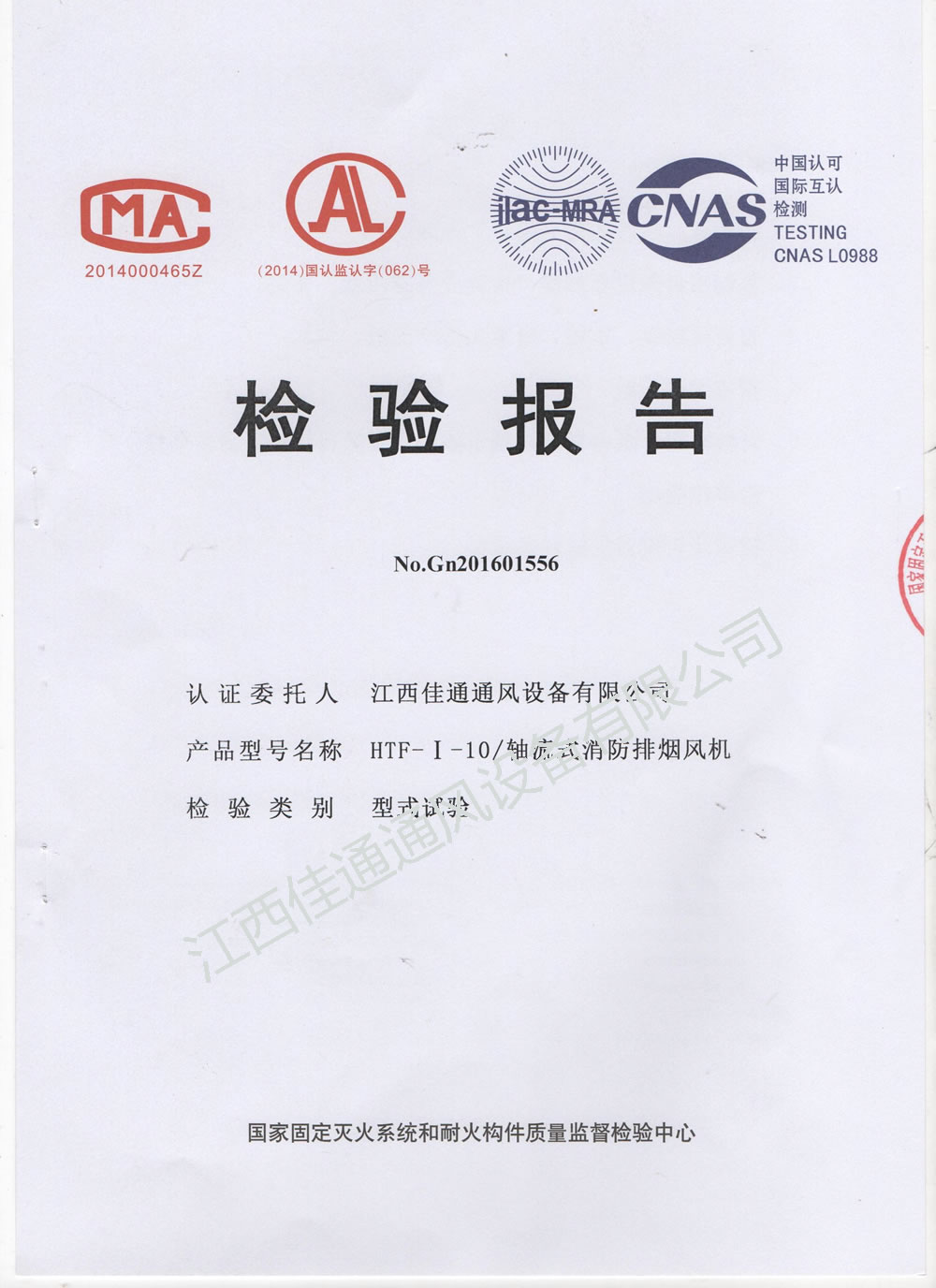 HTF-I-10軸流式消防排煙風機檢測報告