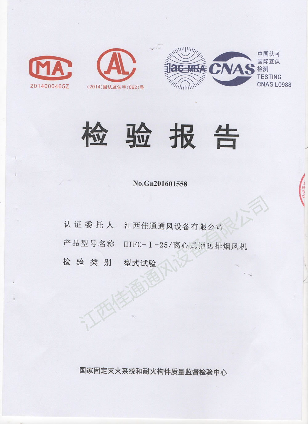 > HTFC-I-25離心式消防排煙風機檢測報告