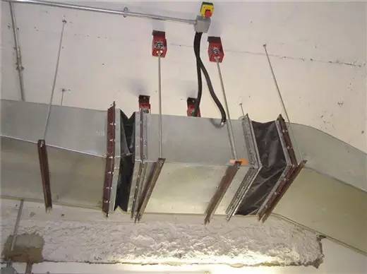 9、閥門等部件要與風管同時組對一起吊裝,調節閥等安裝在便于操作位置,防火閥是系統安全裝置,有水平、垂直、左、右式區別,安裝時不得弄錯,為防止易熔片脫落,安裝時格外小心,當安裝在垂直氣流風道中的防火閥時,易熔片一端必須向關閉方向傾斜5度。