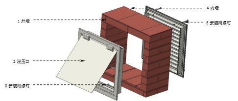泄壓口配套輔助設備是與泄壓口配套的固定格柵(簡稱風口)或裝飾面板,它安裝在泄壓口另一端泄壓孔內或墻上。室外式泄壓口安裝在防護區外墻或走道外墻泄壓孔上,而配套的固定格柵(風口)或裝飾面板則安裝在防護區內墻上,室內式泄壓口從防護區內安裝,配套的固定格柵(風口)或裝飾面板則從防護區外墻或走道外墻泄壓孔上安裝,輔助設備主要作用是防雨雪、美觀和防盜。固定格柵(風口)部件一般采用鋁合金材料加工,嵌入或安裝在泄壓孔內,有防雨雪,美觀和防盜作用。裝飾面板部件結構外形基本上與自動泄壓裝置的面板外型一致,壁掛在泄壓孔上。銀行金庫或博物館安裝泄壓口,建議采用室內式泄壓口,將泄壓口裝飾面板壓著微動開關,當泄壓口離開墻面幾毫米距離時將報警,在泄壓孔的另一端同時安裝防盜窗和風口。