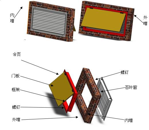 自動泄壓口主要由裝飾面板、箱體部件,閥門組件、裝置啟閉執行驅動部件或裝置固定框架組件等部件及配套的輔助設備組成。泄壓口分機械式些列結構和電動式些列結構兩種。機械式系列在該產品裝置內設置壓力調節卻懂部件或砝碼部件。電動式系列在改產品裝置內設置壓力檢測裝置和電動驅動部件。