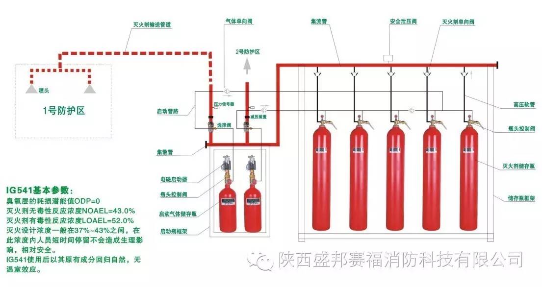 混合氣體滅火劑是由氮氣、氬氣和二氧化碳氣體按一定的比例混合而成的氣體,這些氣體都是在大氣層中自然存在的,對大氣臭氧層沒有損耗,也不會對地球的“溫室效應”產生影響,而且混合氣體無毒、無色、無味、無腐蝕性、不導電,既不支持燃燒,又不與大部分物質產生反應,是一種十分理想的環保型滅火劑。