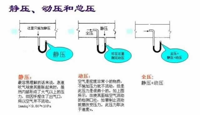 [導讀]:在選擇空調或風機時,常常會遇到靜壓、動壓、全壓與余壓。根據流體力學知識。流體作用在單位面積上的垂直力稱為壓力,當空氣沿風管內壁流動時,其壓力可分為靜壓、動壓和全壓。單位分別為mmHg或kg/㎡或Pa。1、靜壓:由于空氣分子不規則運動而撞擊管壁上產生的壓力。▶ 語音朗讀