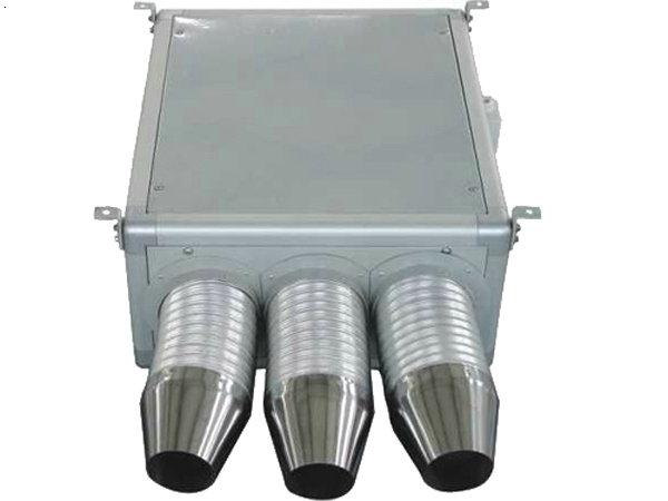 YDF誘導風機是無風道射流誘導通風系統的一部分,它與送風機、排風機、控制設備組成整個系統。誘導風機內置超薄型高效多翼式離心風機,一般為臥式安裝,三噴嘴形式,也可制成單噴嘴、雙噴嘴及立式安裝。具有噪聲低、體積小、重量輕、吊裝方便、維護簡單等特點,廣泛配套應用于地下停車場,體育館、車間、倉庫、商場、超市、娛樂場所等大面積場合的通風。
