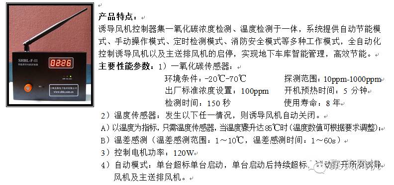6、電氣及控制:在每臺誘導風機邊預留單相電源接線;控制方式有CO感測自控,時間編程自控、手動開關控制三種,可視室內情況選用,但任何一種控制方式最好與送、排風機連鎖運轉。
