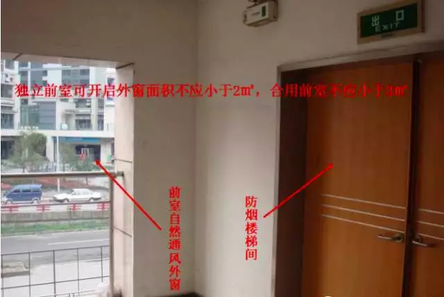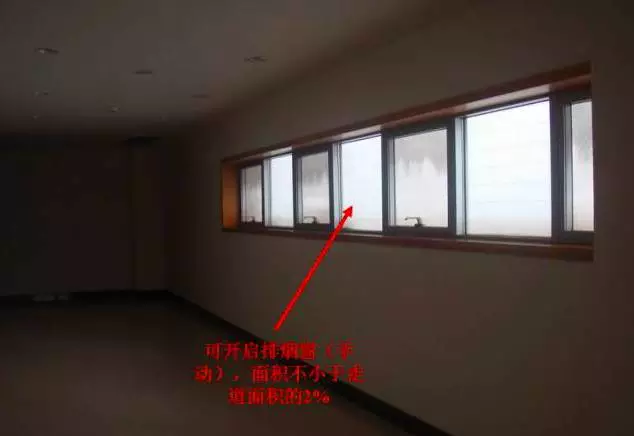 注:此處(房間和走道)的自然通風不同于樓梯間和前室的自然通風。雖然它們的原理相同,但此處是作為排煙措施,而樓梯間和前室是作為防煙措施。