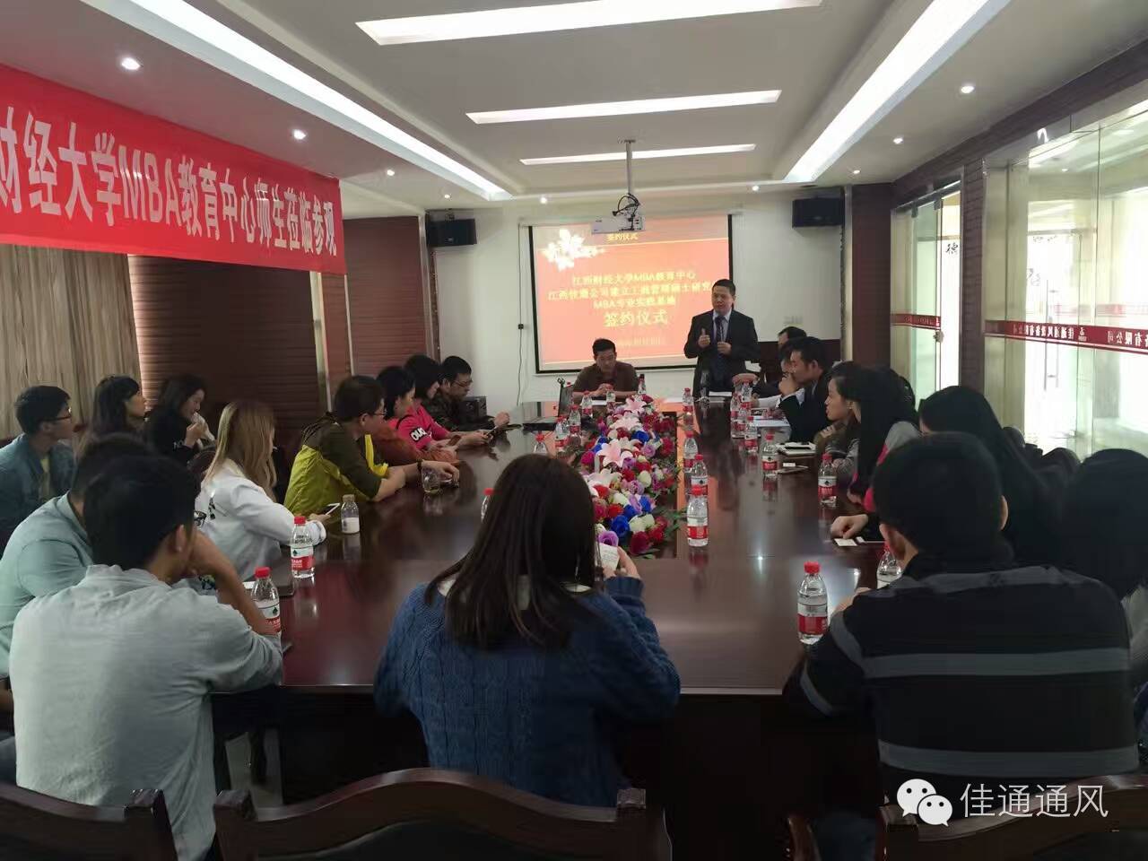 江西財經大學工商管理MBA師生走進佳通公司,并共同簽署了《建立MBA專業實踐基地協議》