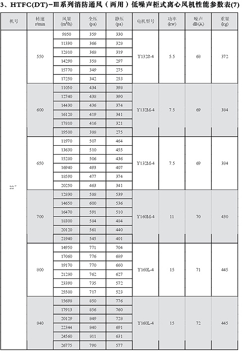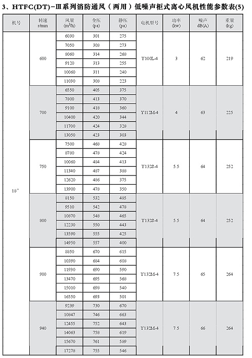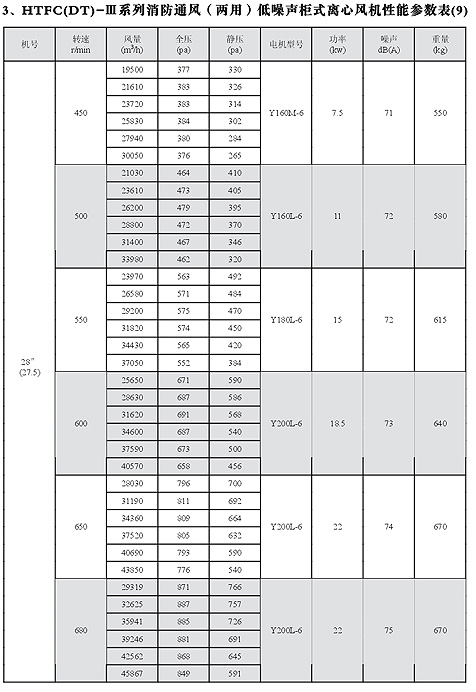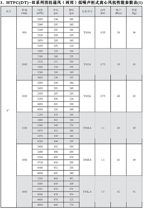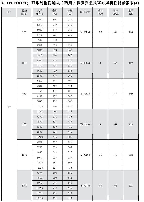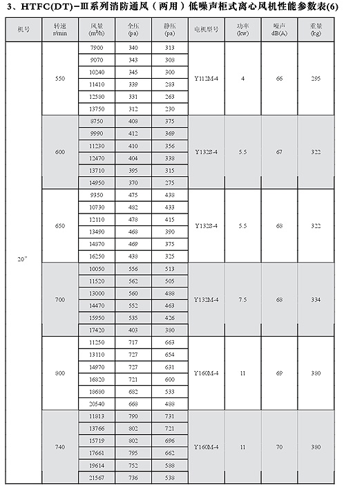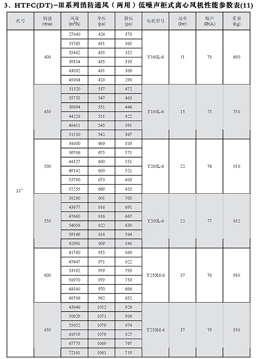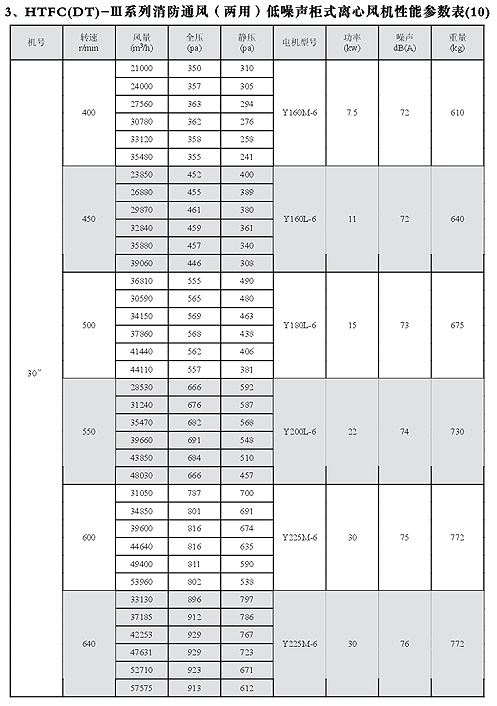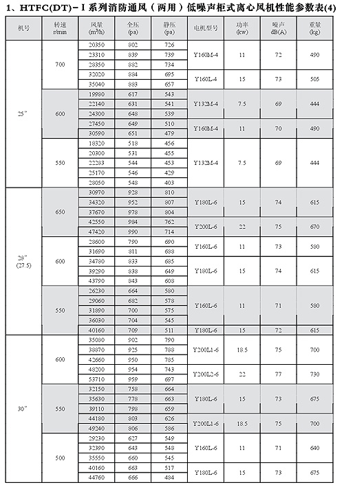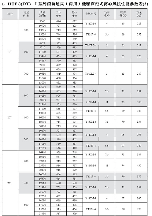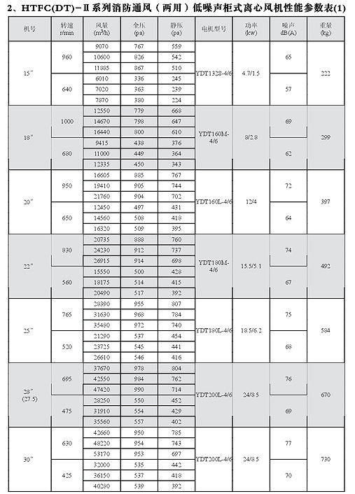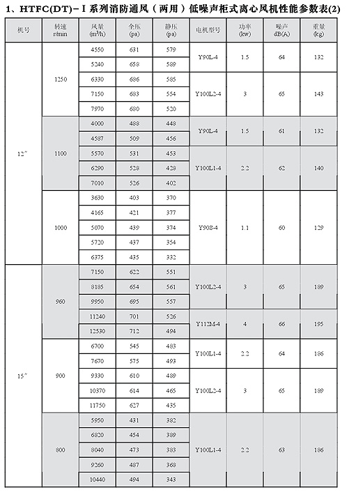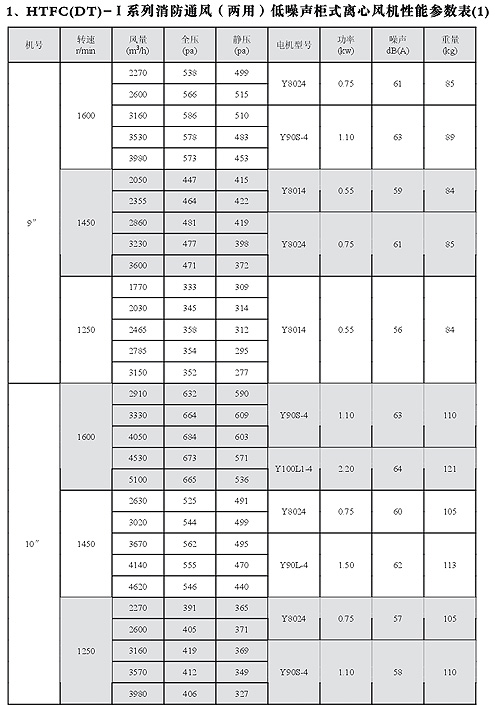HTFC(DT)-I消防低噪聲柜式離心風機性能參數