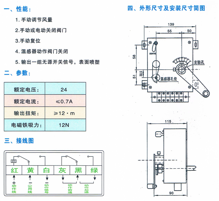 全自動排煙防火閥具有電控開啟、手動開啟、溫控關閉,手動復位,電動復位,輸出開、關信號和聯鎖信號等功能。